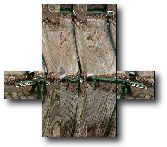 The camera pans across an alligator sculpture, scanning the alligator out along the sides. There are three similar shots cut together here.